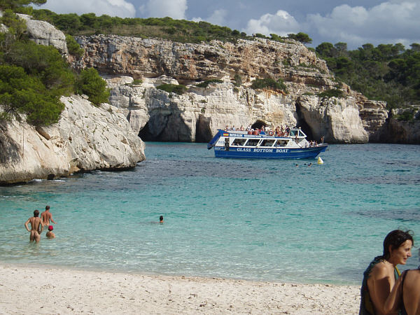 Während der Sand an den Stränden im Süden, hervorgebracht von einem Kalksandstein-Plateau, kreideweiß ist und zusammen mit der türkisblauen Farbe des kristallklaren Wassers Karibikfeeling im Mittelmeer versprüht, so finden sich im Norden Menorcas als Kontrast auch grobkörnigere Strände mit goldgelbem oder sogar rotbräunlichem Sand. Ebenso unterscheidet sich die Beschaffenheit der Küste, im Norden findet man rauere, zerklüftete Abschnitte mit weniger Vegitation, im Süden dafür mit Palmen und Pinienwäldern umso üppigere. Das klare Wasser verdankt Menorca in der von Ende Mai bis Oktober gehenden Badesaison mit Wassertemperaturen von 20 bis 25° Celsius.